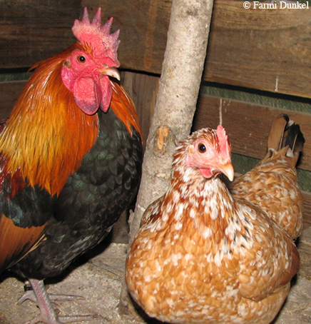 Kanamme sekä kukko ovat suomalaisia maatiaiskanoja, Alhon kantaa,